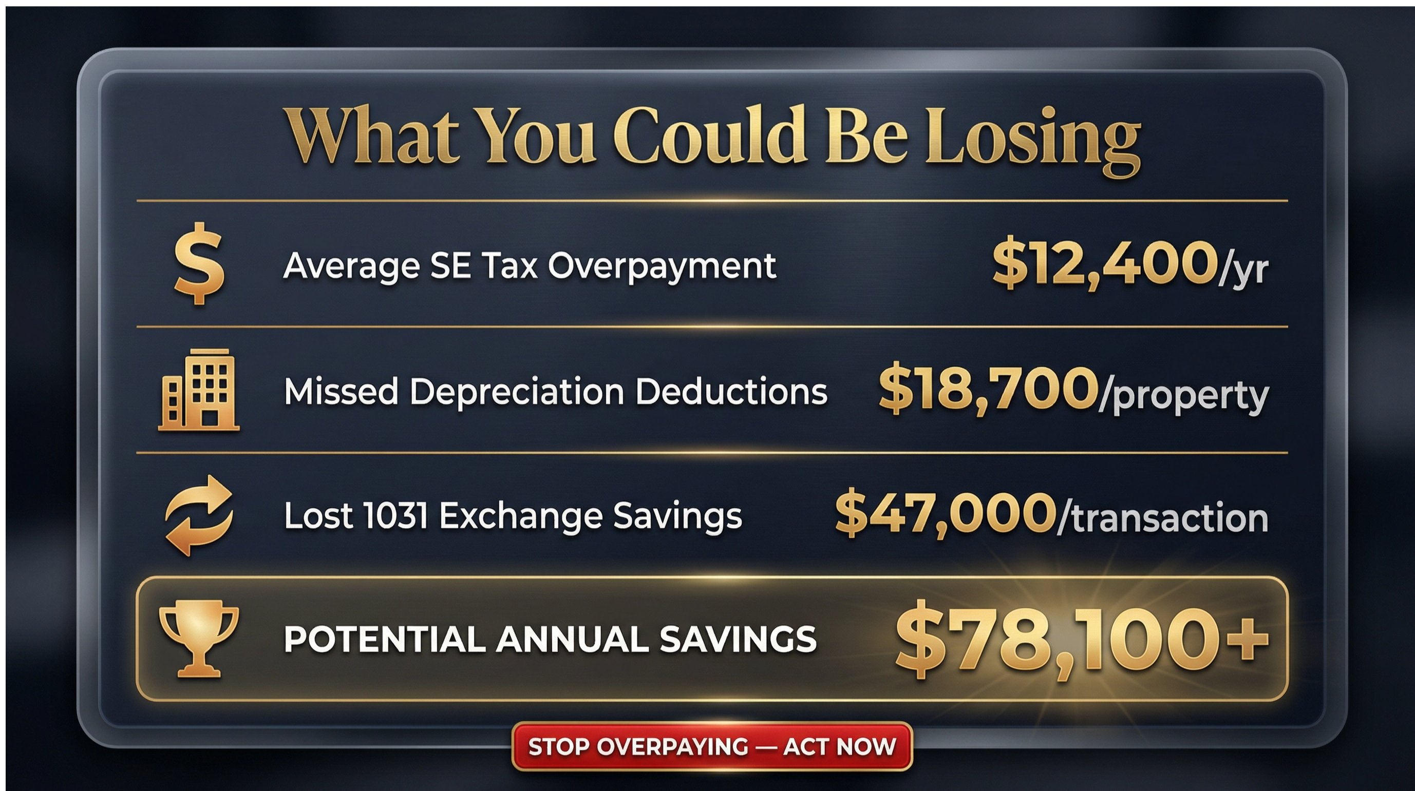 Missing depreciation deductions that could save $10,000+/year