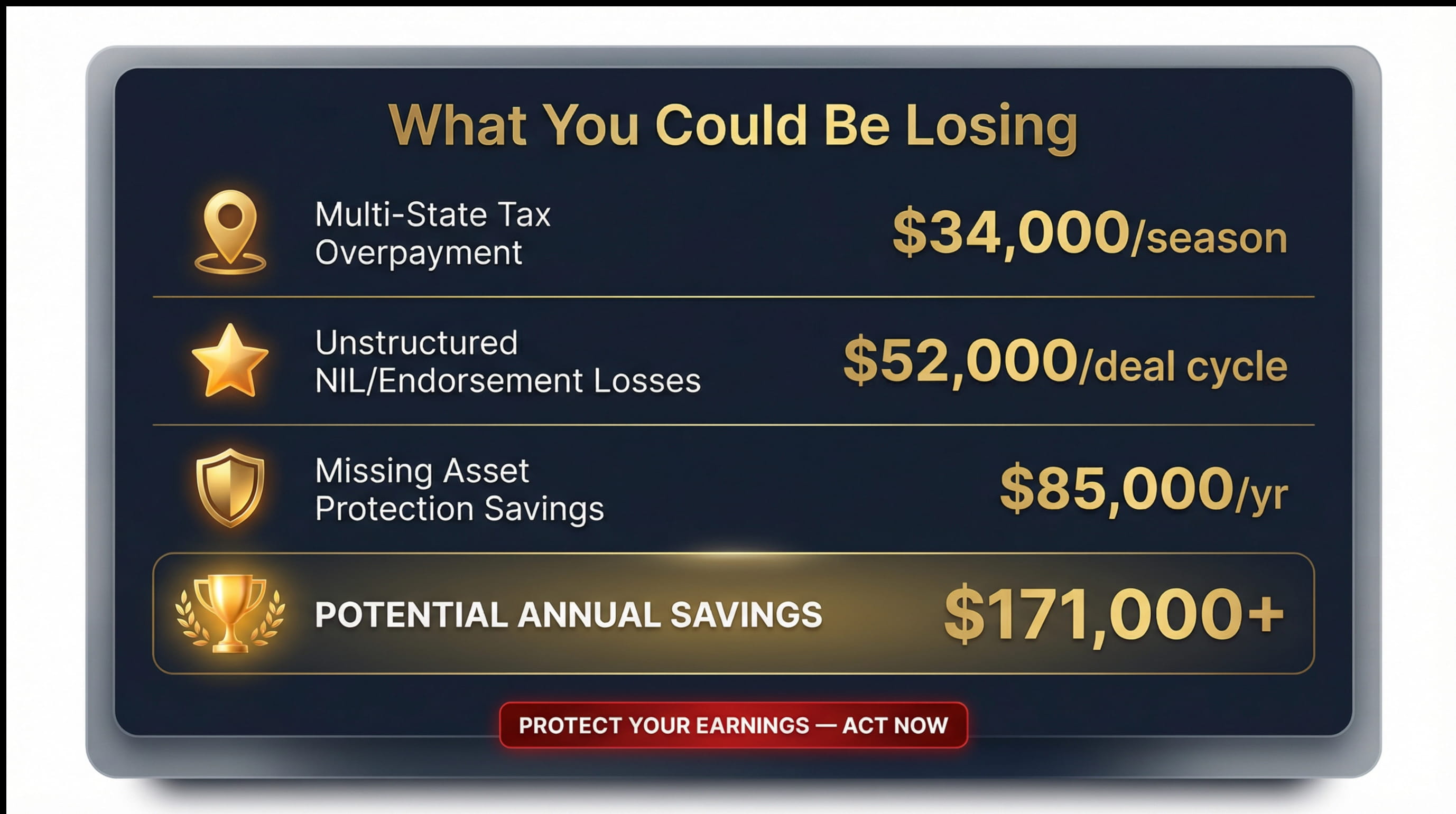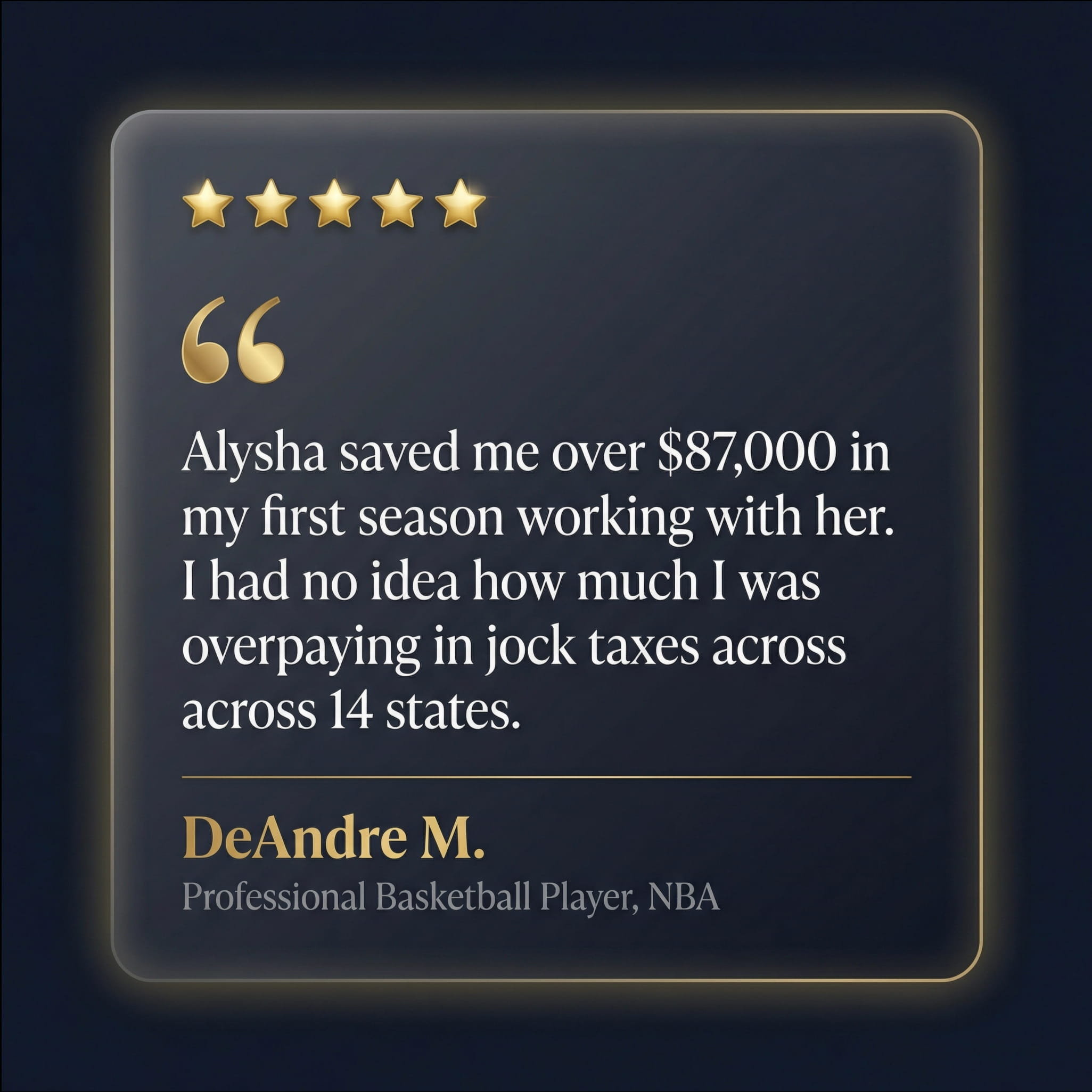 We understand the unique "short-window" nature of sports and entertainment careers. While most CPAs treat your return as a compliance checkbox, we treat your entire earning trajectory — contracts, endorsements, touring income, and investments — as a wealth engine that must be optimized every single quarter.